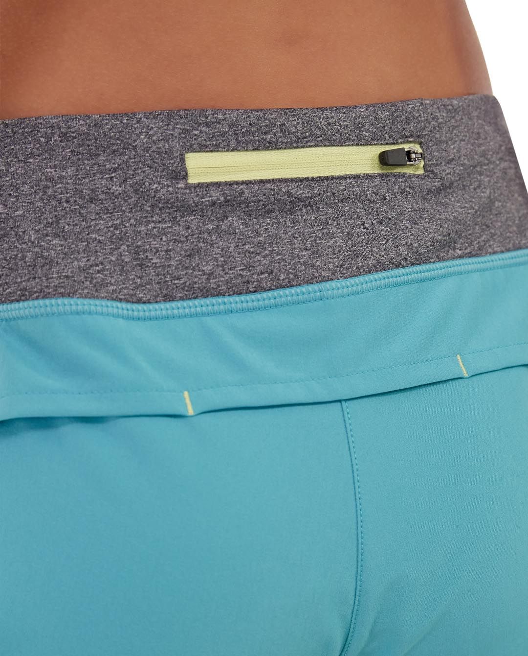 • Seafoam pattern running shorts.